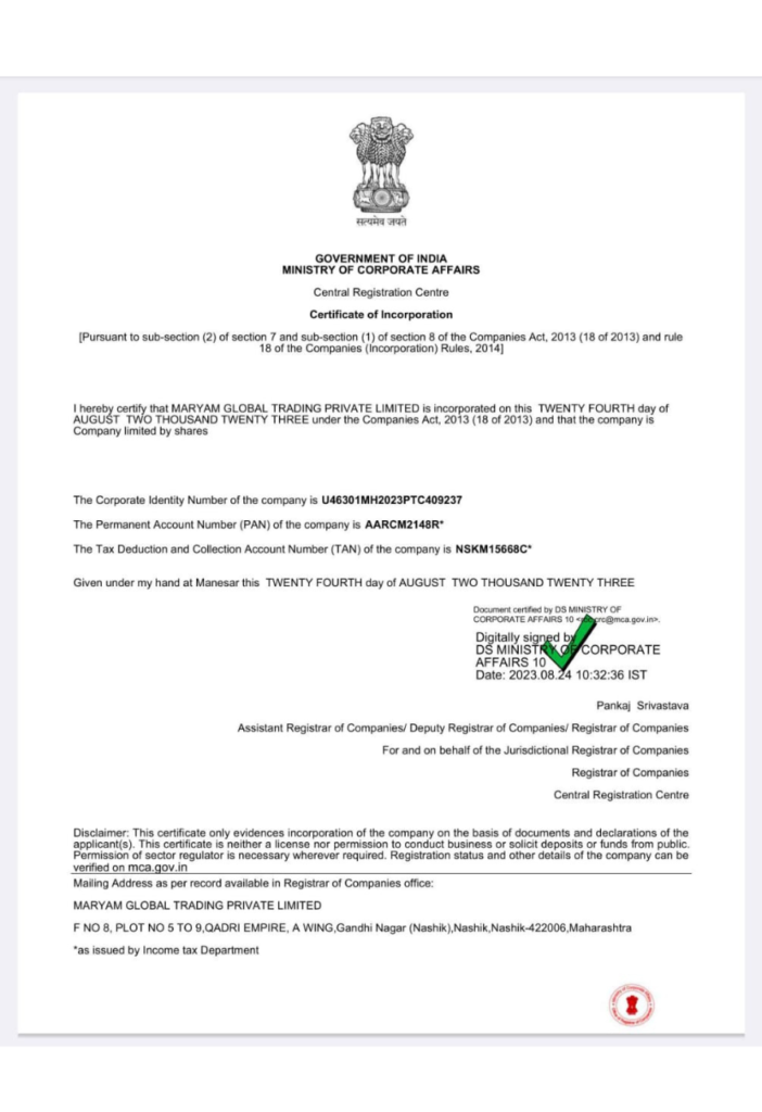 Incorporation Certificate